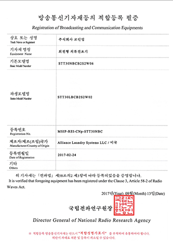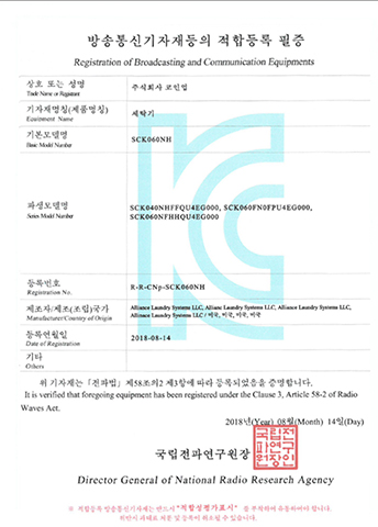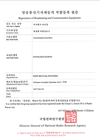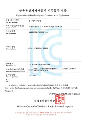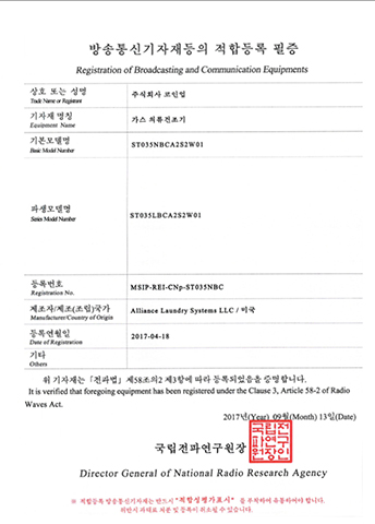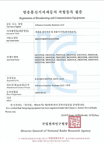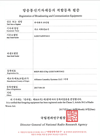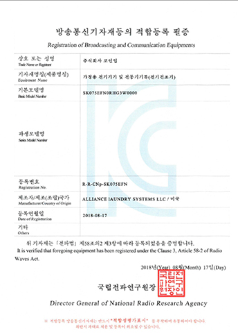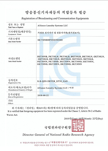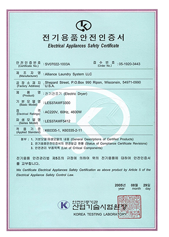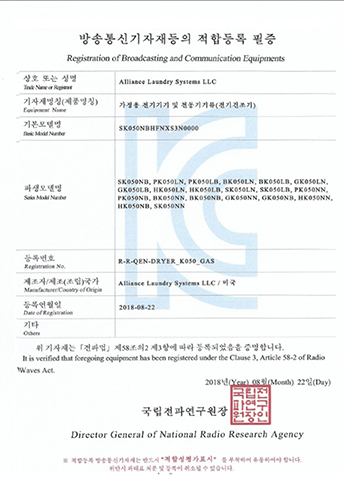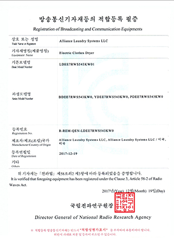 LDEE7RWS543KW01-KC EMC Certificate ELECTRIC CLOTHES DRYER