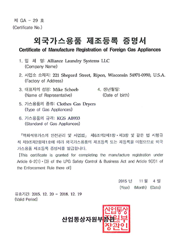 KGS_Manufacturer Registration ¿Ü±¹ °¡½º¿ëǰ Á¦Á¶µî·Ï Áõ¸í¼