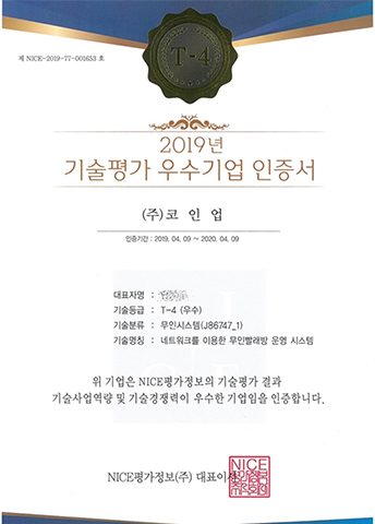 2019 ±â¼úÆò°¡ ¿ì¼ö±â¾÷ ÀÎÁõ¼