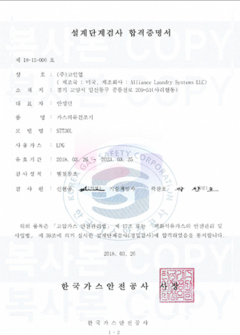 °¡½ºÀÇ·ù°ÇÁ¶±â ÇÕ°ÝÁõ¸í¼_STT30L